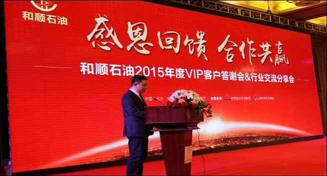 2015年12月14日,和順石油2015年度VIP答謝&行業(yè)交流分享會(huì )在長(cháng)沙華雅國際大酒店順利召開(kāi)。會(huì )議邀請到和順石油全省VIP客戶(hù)共計300余家企事業(yè)單位和民營(yíng)加油站客戶(hù)以及和順石油戰略合作伙伴東明石化集團,陜西延長(cháng)石油集團、山東匯豐石化集團、山東正和石化集團的貴賓出席。感謝各位來(lái)賓對和順石油的支持與厚愛(ài),各地朋友齊聚一堂,共同回顧2015年我們一起走過(guò)的點(diǎn)滴,相互交流與探討行業(yè)發(fā)展趨勢以及企業(yè)如何應對未來(lái)的機遇和挑戰。