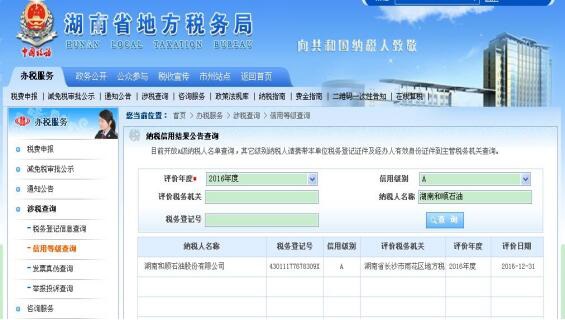 為推進(jìn)社會(huì )誠信體系建設,湖南省國稅局、地稅局按照國家稅務(wù)總局《納稅信用管理辦法(試行)》(總局公告2014第40號),開(kāi)展了2016年度納稅信用聯(lián)合評價(jià)工作,我司再次獲得納稅信用“金字代言——A級納稅人”的稱(chēng)號,我司已連續三年獲此榮譽(yù),展現了誠信納稅的良好企業(yè)形象。